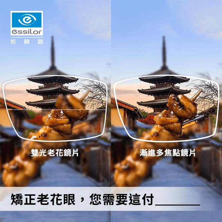 2:另一種方法是現時最常用的,就是配戴多點漸進式鏡片,此類鏡片主要由近、近組成的光學鏡片,同事能夠兼具看遠或看近較為方便,(溫馨提示:並不是每位配戴者也合適戴漸鏡片,請向較專業的驗光師尋找合適方案。而主要優點如下: