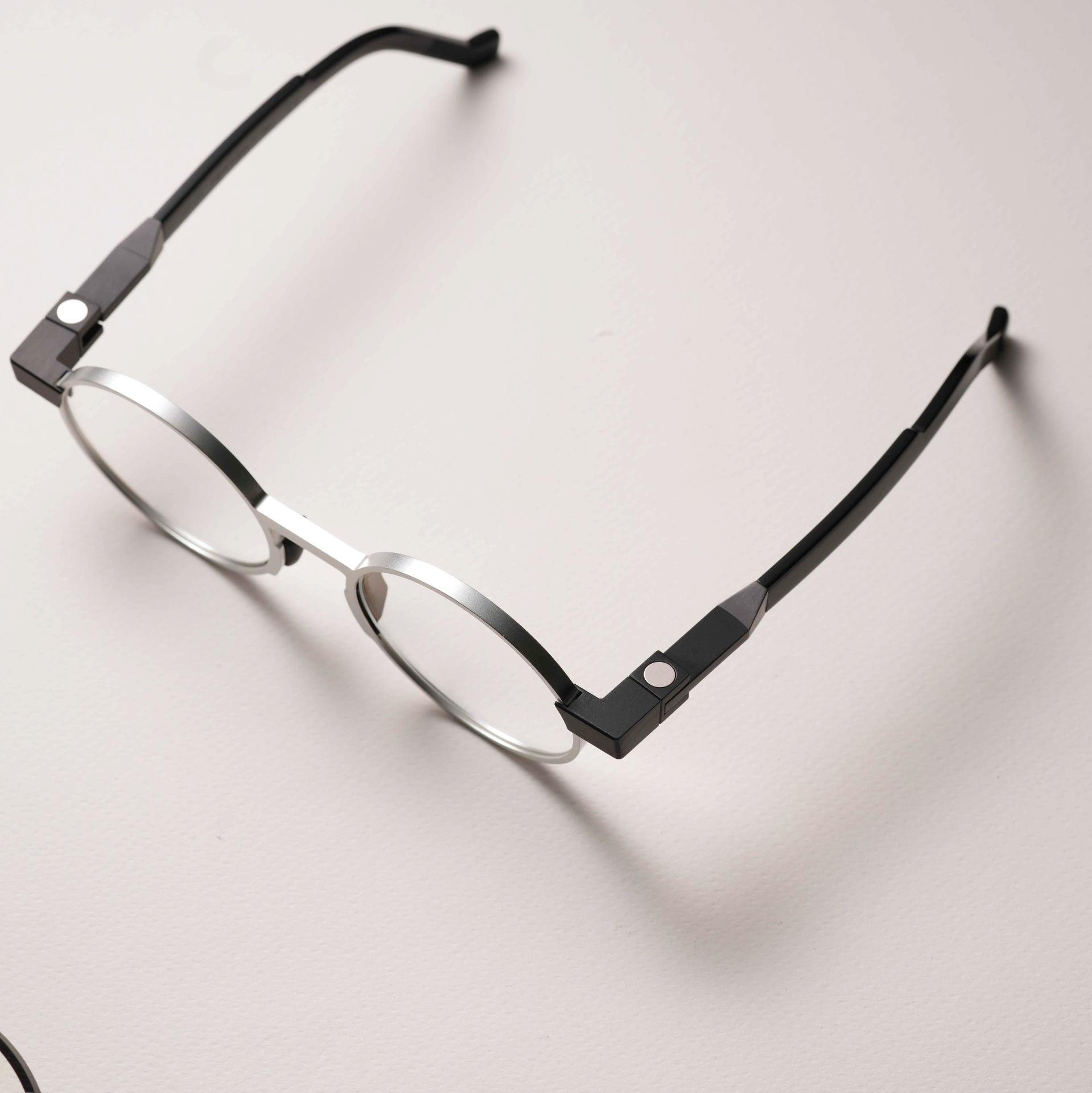 鏡框的立方鉸鏈設計受到藝術家 Sol Lewitt 的強烈影響,結構靈感源自立方體。同時工業風以基礎元素創造出富有藝術感的鏡款。另外部分鏡框採用環保且 100% 可回收的生物醋酸材料製成,體現了其在可持續發展方面的努力。