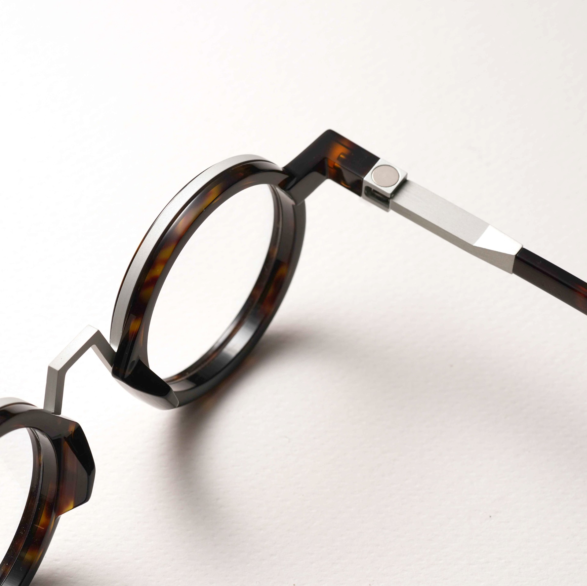 鏡框的立方鉸鏈設計受到藝術家 Sol Lewitt 的強烈影響,結構靈感源自立方體。同時工業風以基礎元素創造出富有藝術感的鏡款。另外部分鏡框採用環保且 100% 可回收的生物醋酸材料製成,體現了其在可持續發展方面的努力。